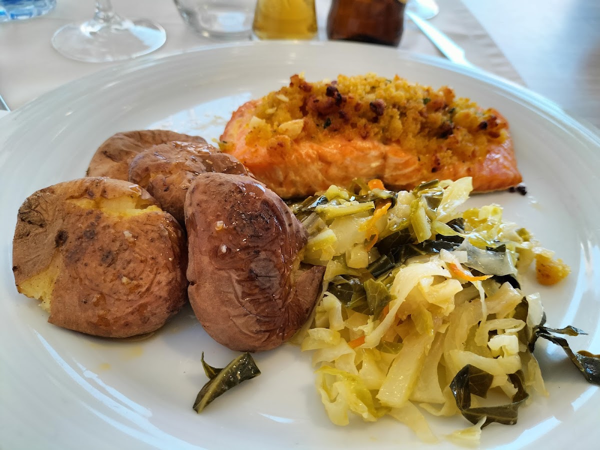 One of the standout dishes at Restaurante Sabores D'el Rei is the Bolo, a delightful dessert that perfectly complements any meal. If you're in the mood for something savory, the Salmón al Horno Con Patatas y Verduras is a must-try. The baked salmon, accompanied by a generous serving of tender potatoes and fresh vegetables, offers a flavorful yet light option for those who enjoy seafood. For meat lovers, the Naco de Vitela (veal steak) is a standout choice, offering a rich, succulent taste that's sure to satisfy your appetite.